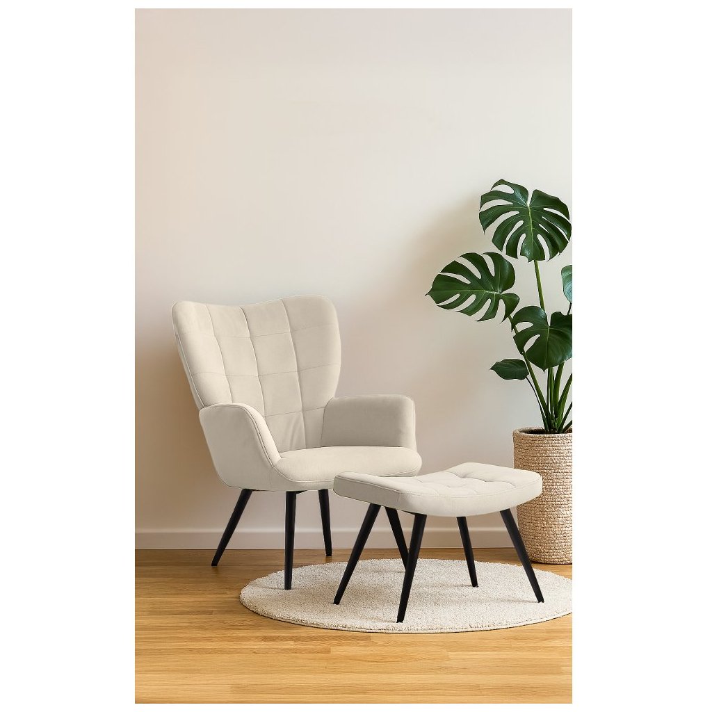 Hlavné prednosti Ušiakové kreslo s podnožkou - HABEN, Biela zamatová látka