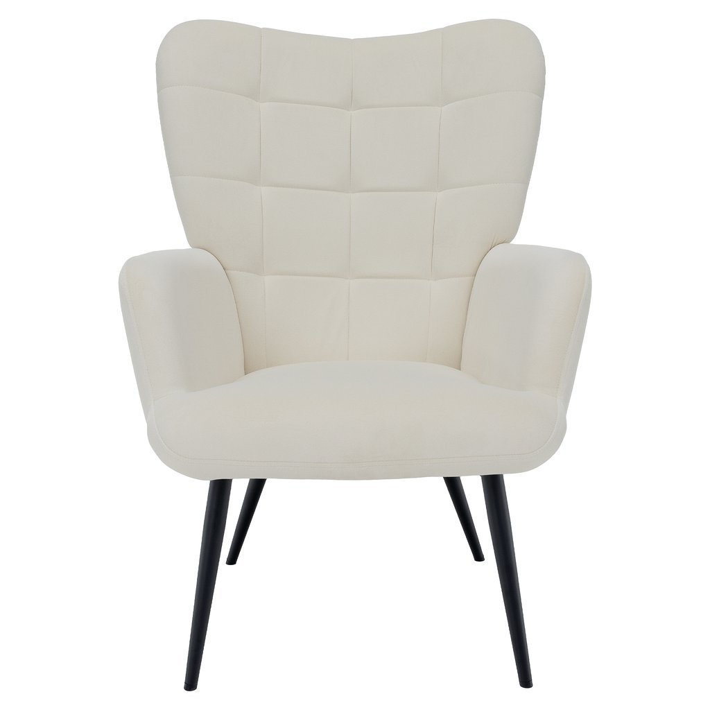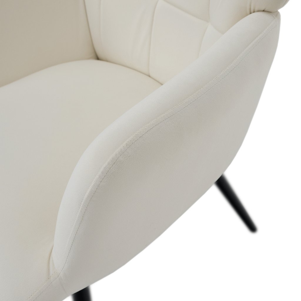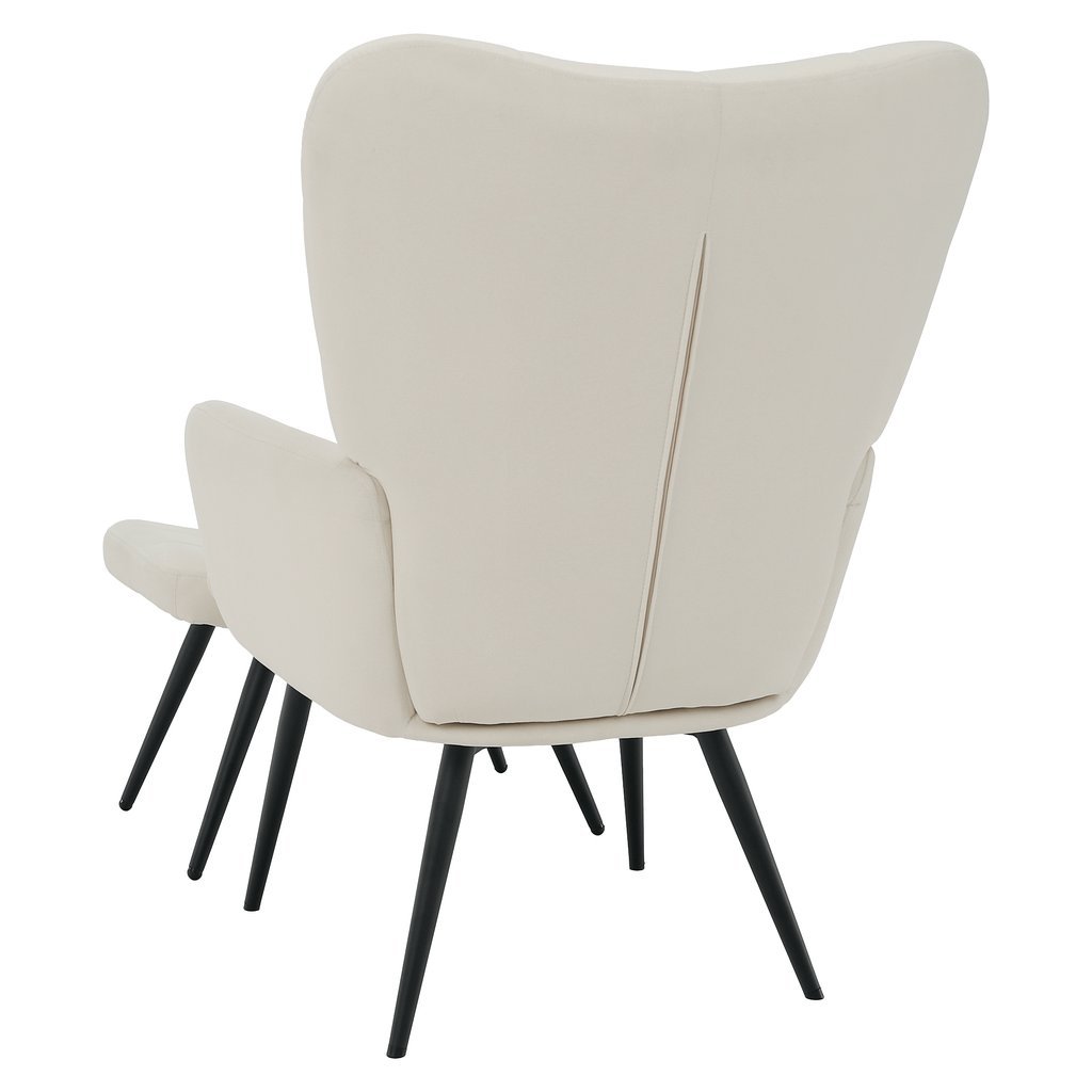 Ušiakové kreslo HABEN spája eleganciu a pohodlie. Čalúnené bielou zamatovou látkou s praktickou podnožou pre oddych nôh. Stabilitu zabezpečuje čierny kov. Ideálny spoločník na relax!