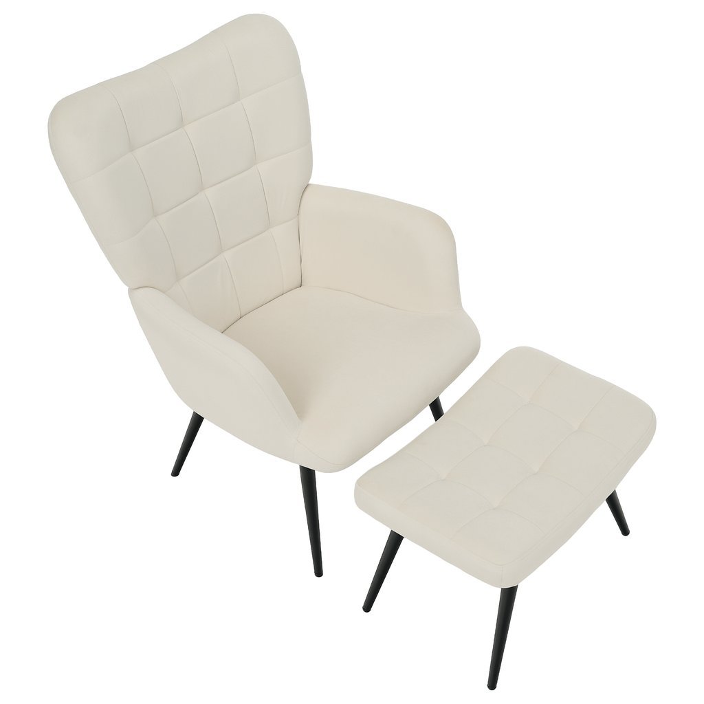 Ušiakové kreslo s podnožkou - HABEN, Biela zamatová látka