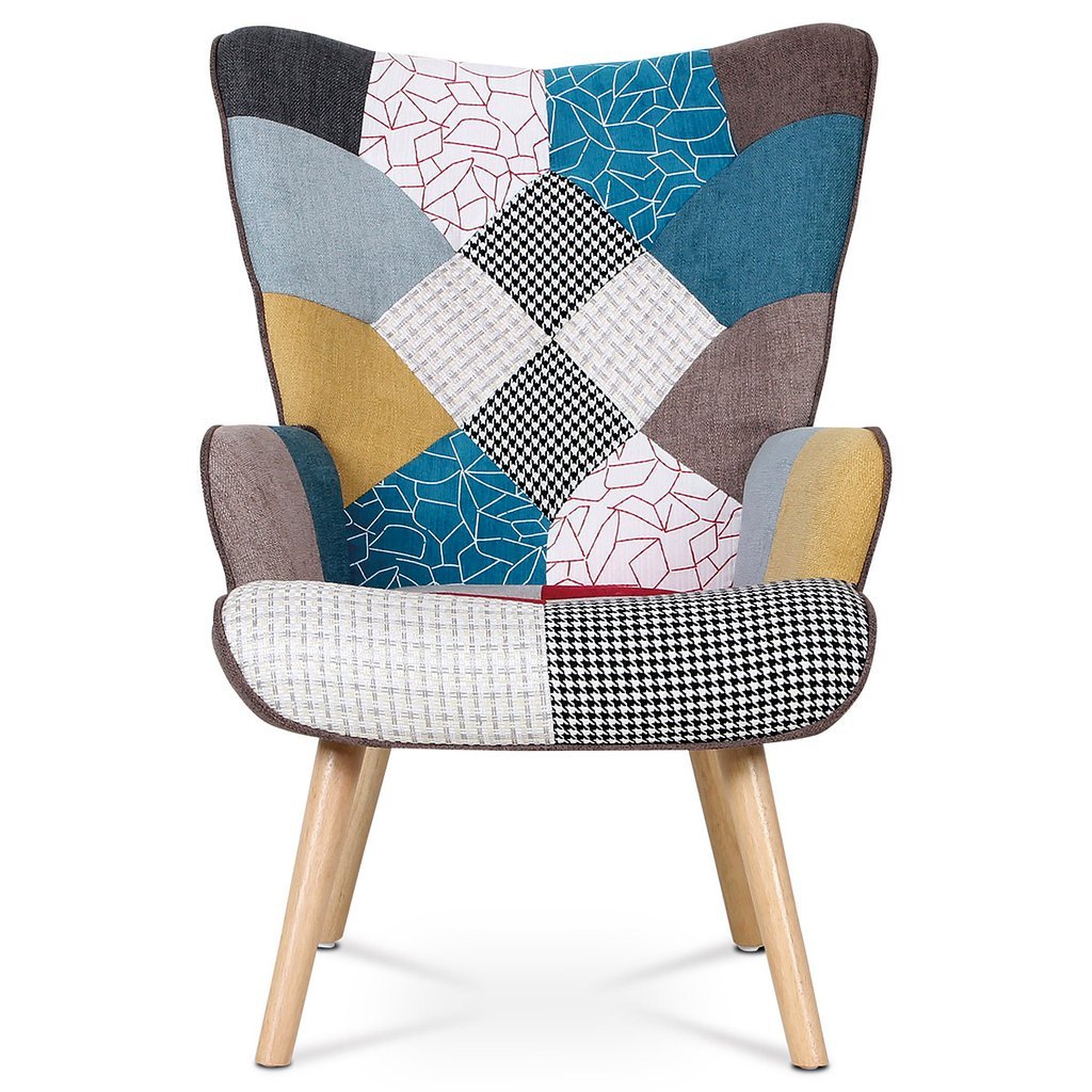 Ušiakové kreslo s podnožkou - SPARK, Viacfarebná látka