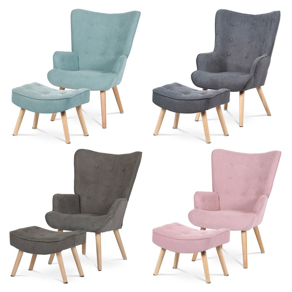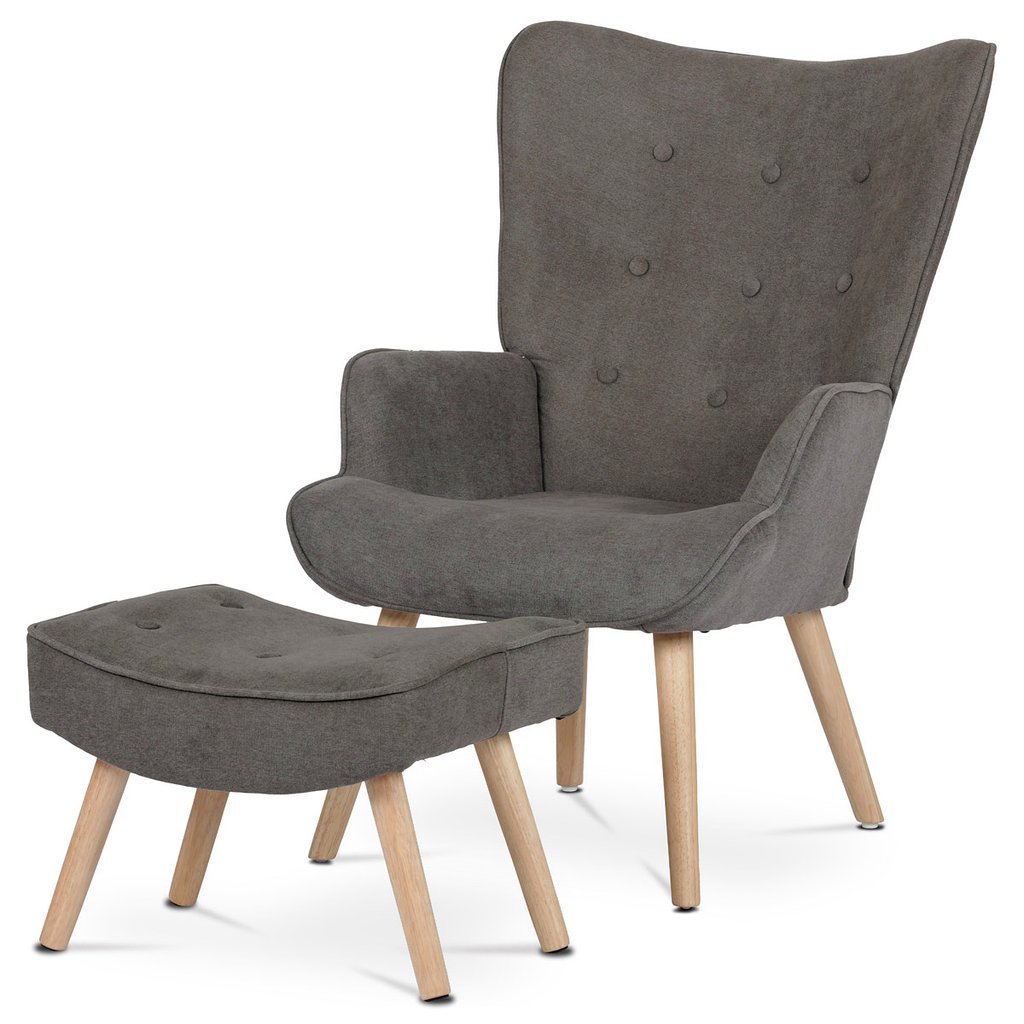 Ušiakové kreslo s podnožkou - STONE, Lanýžová látka