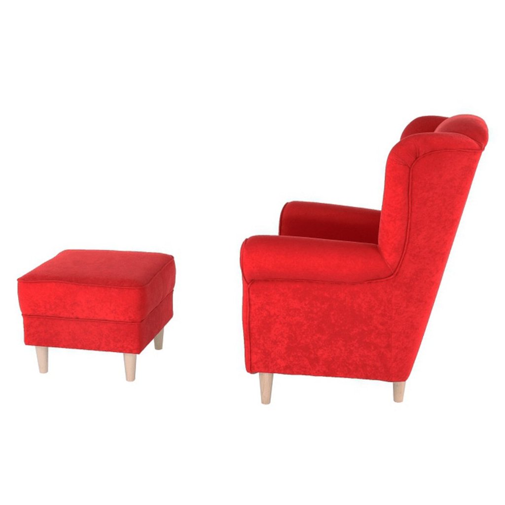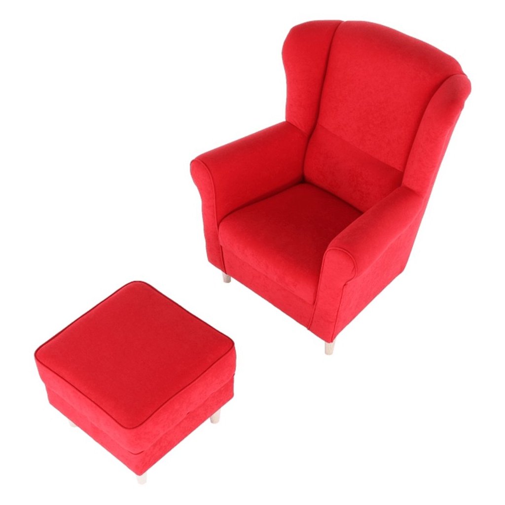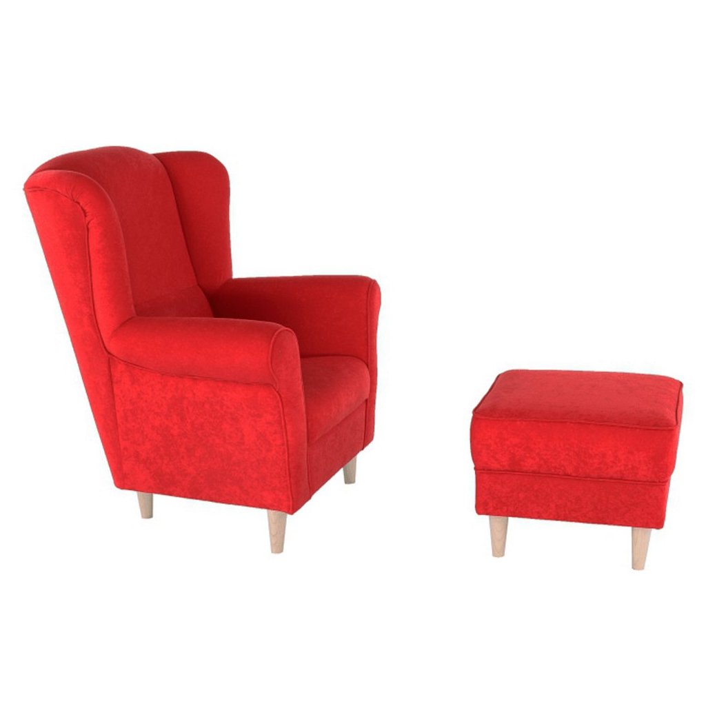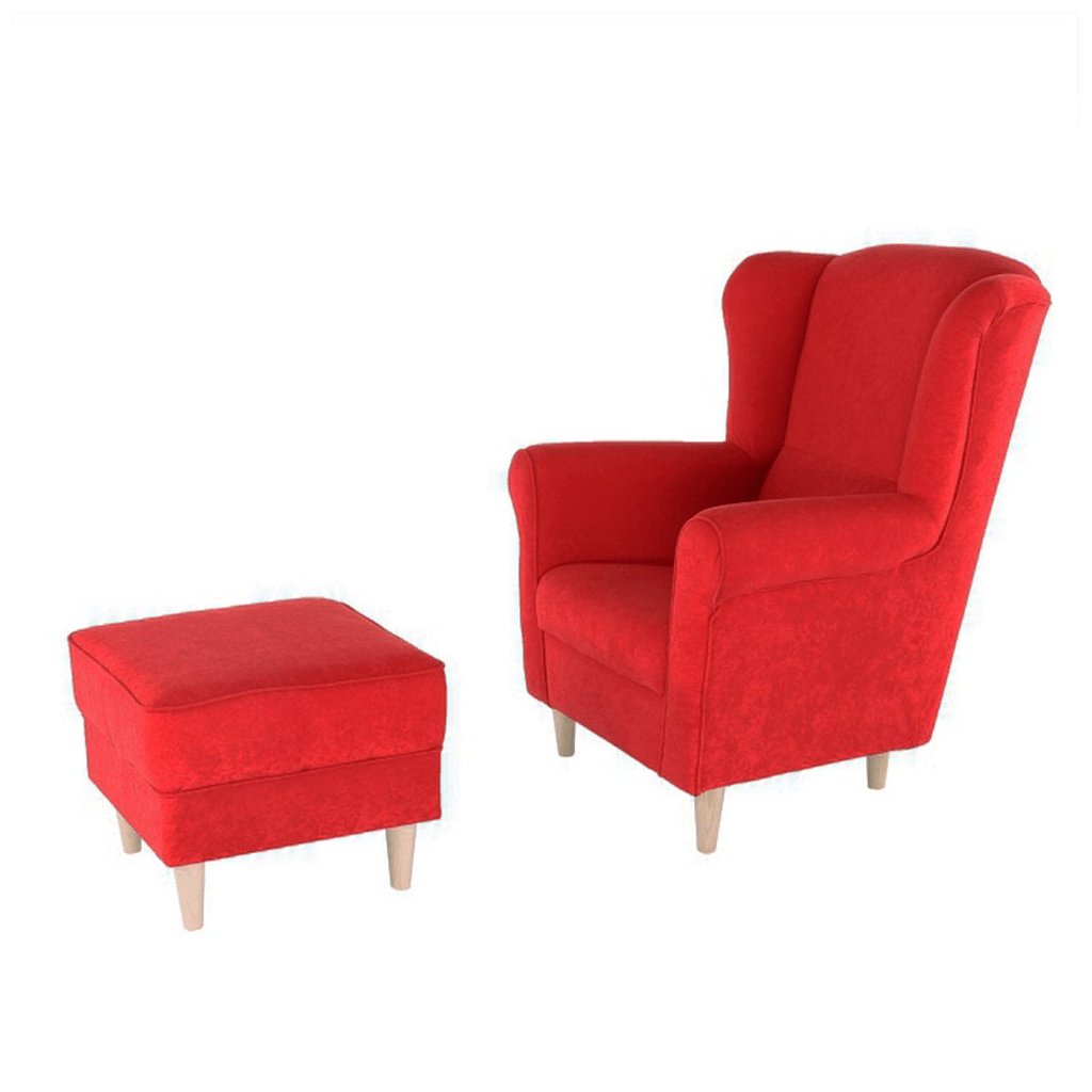 Ušiakové kreslo s taburetom - ASTRID, Červená látka