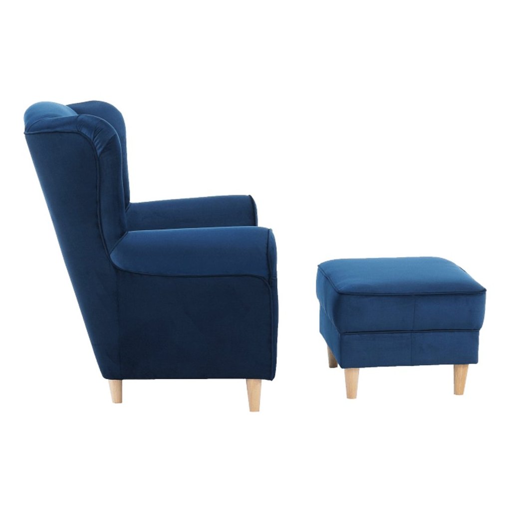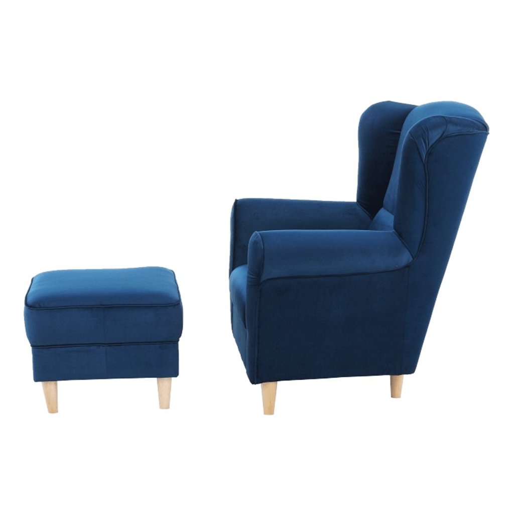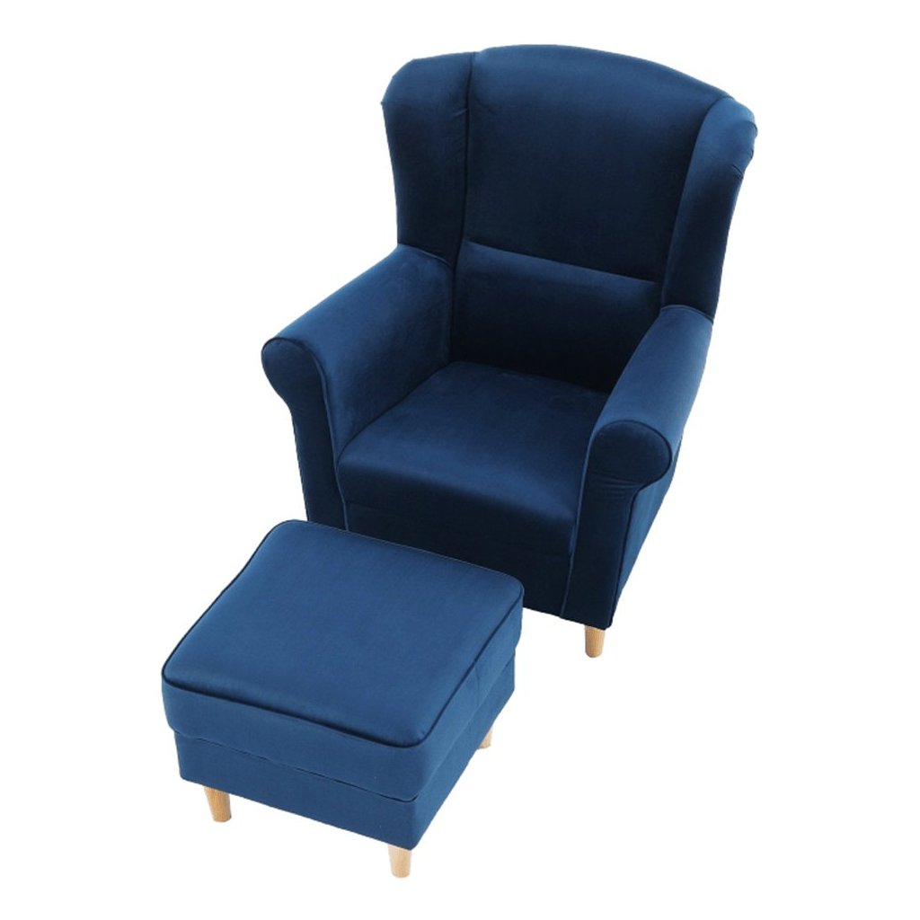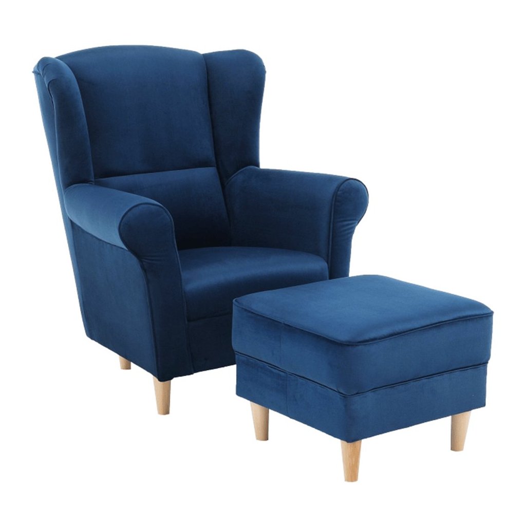 Ušiakové kreslo s taburetom - ASTRID, Modrá látka