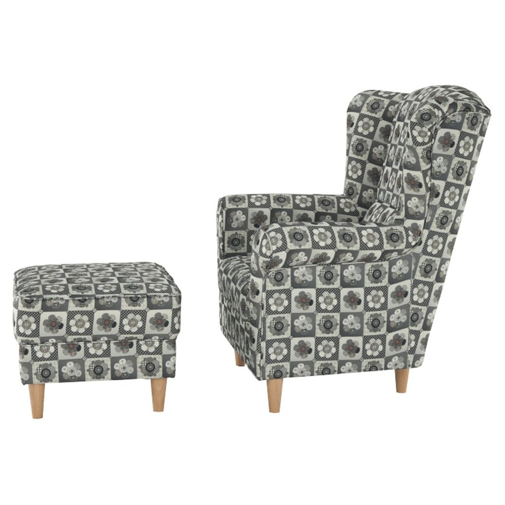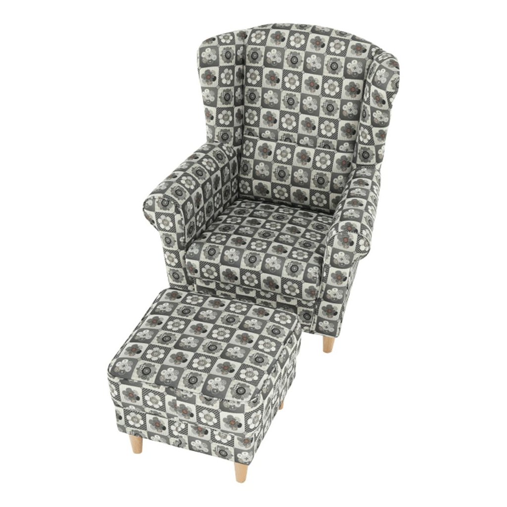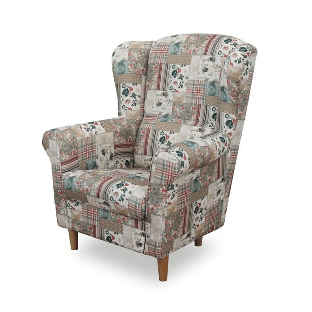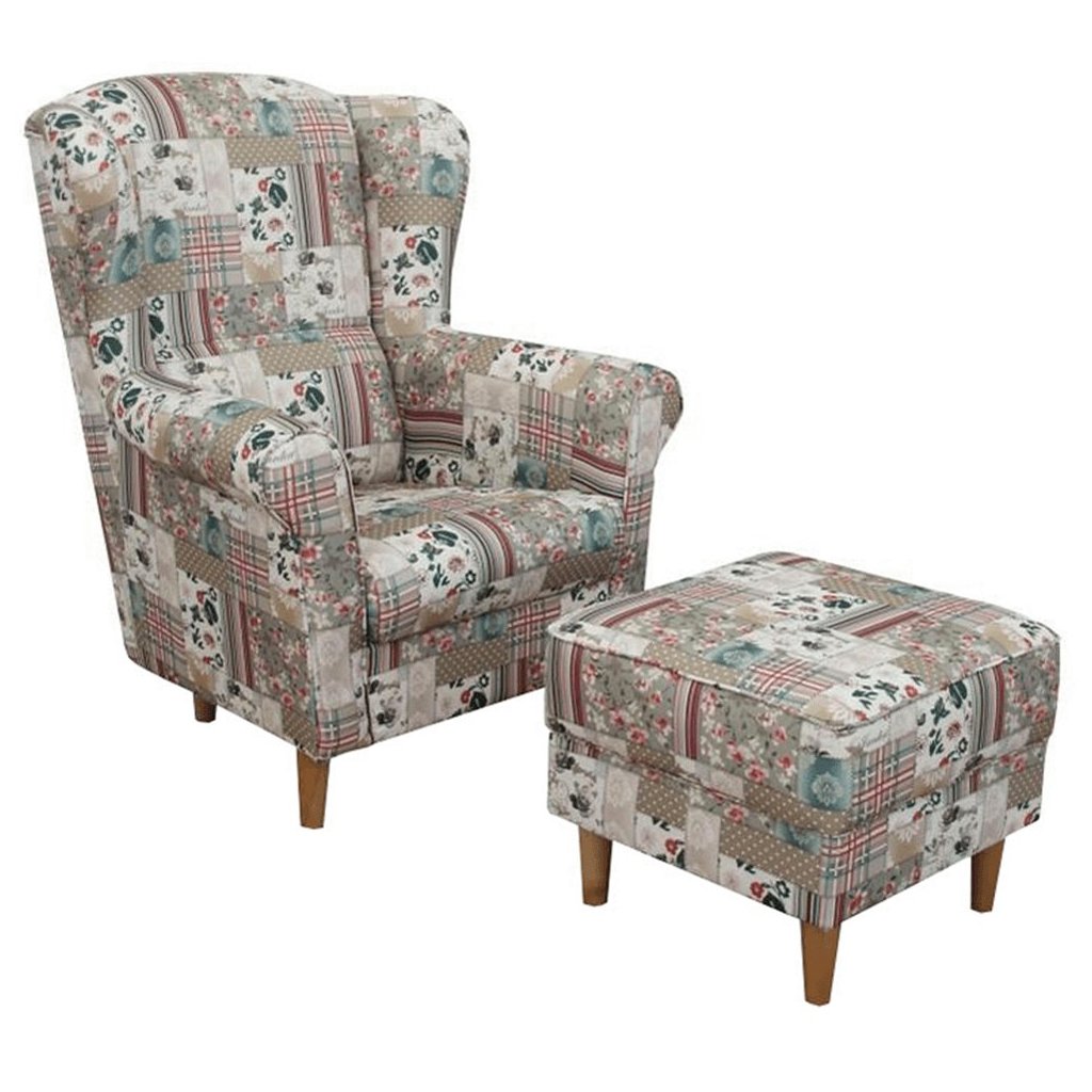 Ušiakové kreslo s taburetom - ASTRID, Patchwork