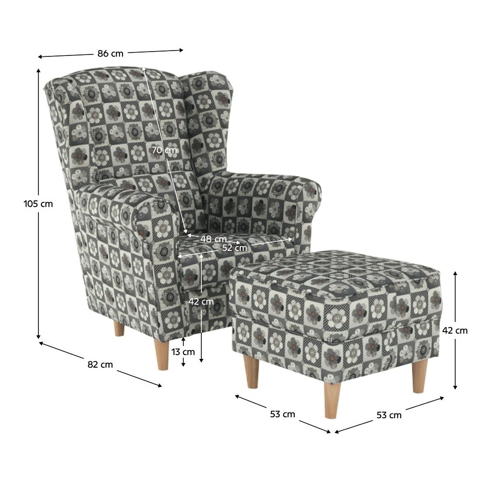 Ušiakové kreslo s taburetom ASTRID v štýlovom prevedení Patchwork2 je ideálnym doplnkom do vášho interiéru. Kombinácia komfortu a moderného dizajnu z neho robí skvelý kus nábytku, ktorý si zamilujete pri každom sedení. S jeho praktickými rozmermi a atraktívnym vzhľadom sa stane neodmysliteľnou súčasťou vášho domova.