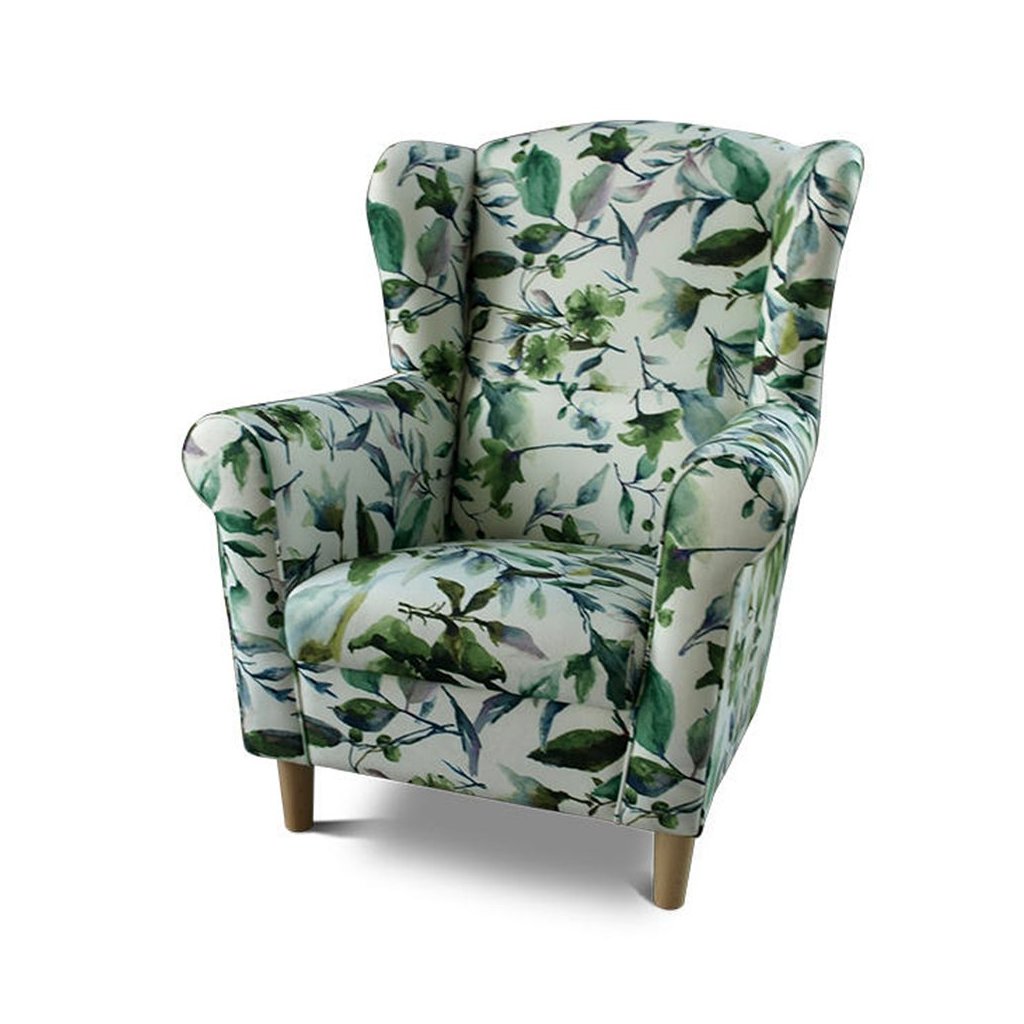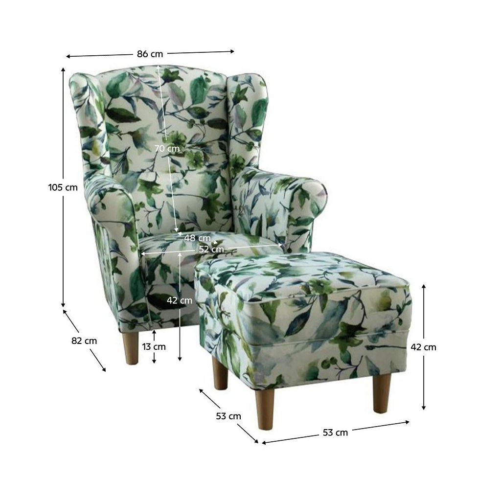 Ušiakové kreslo s taburetom - ASTRID, Vzor lístie je ideálnou voľbou pre váš domov.