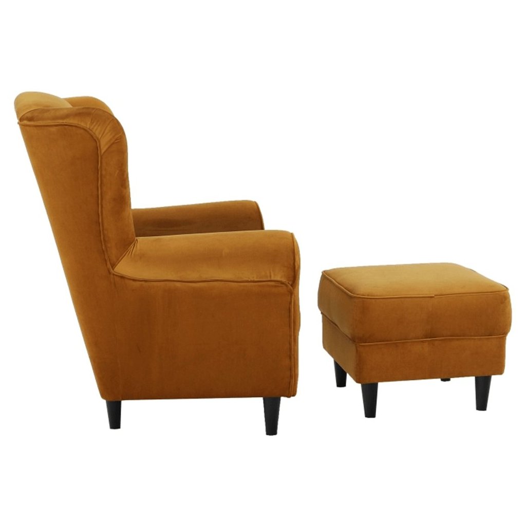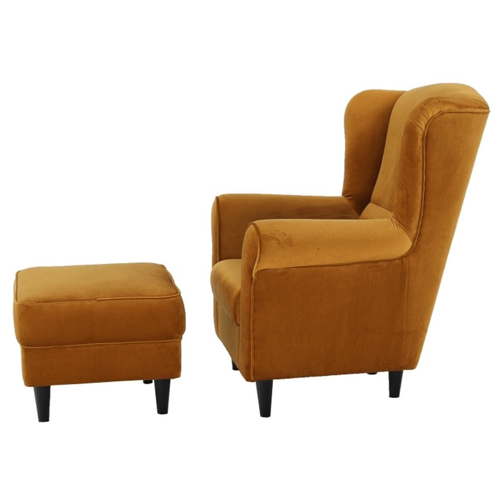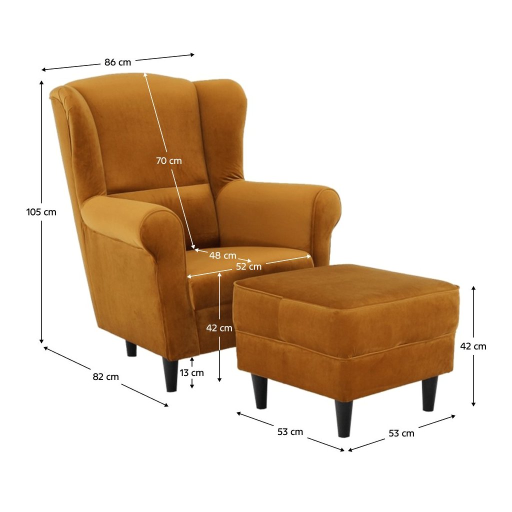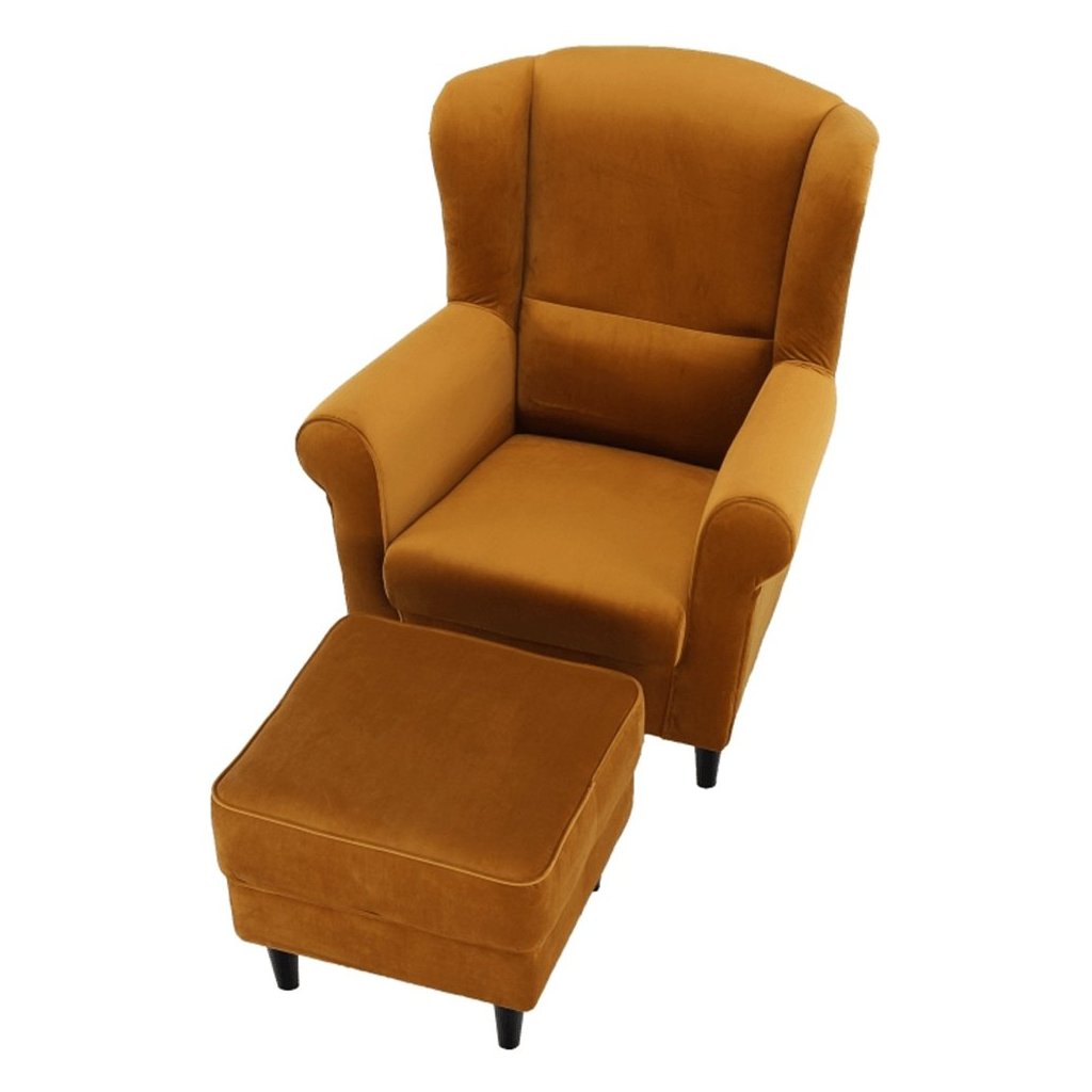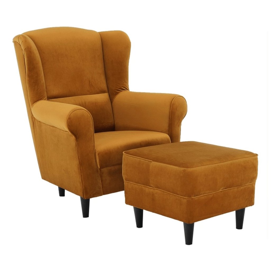 Ušiakové kreslo s taburetom - ASTRID, Žltá látka