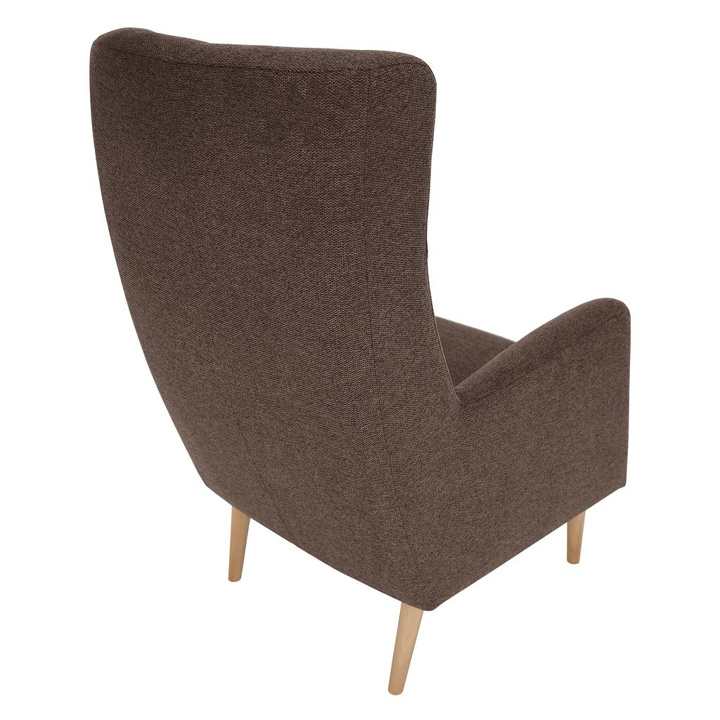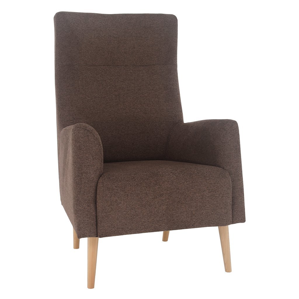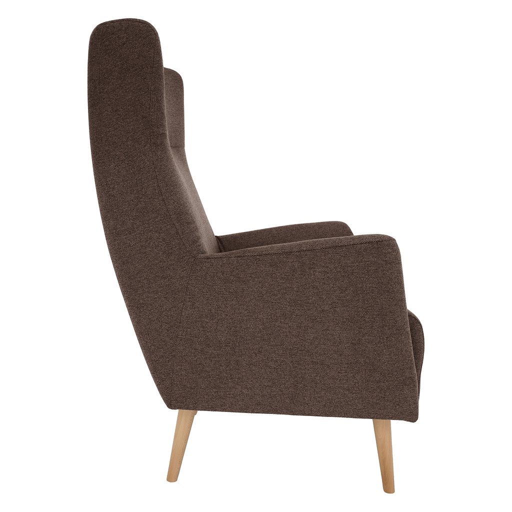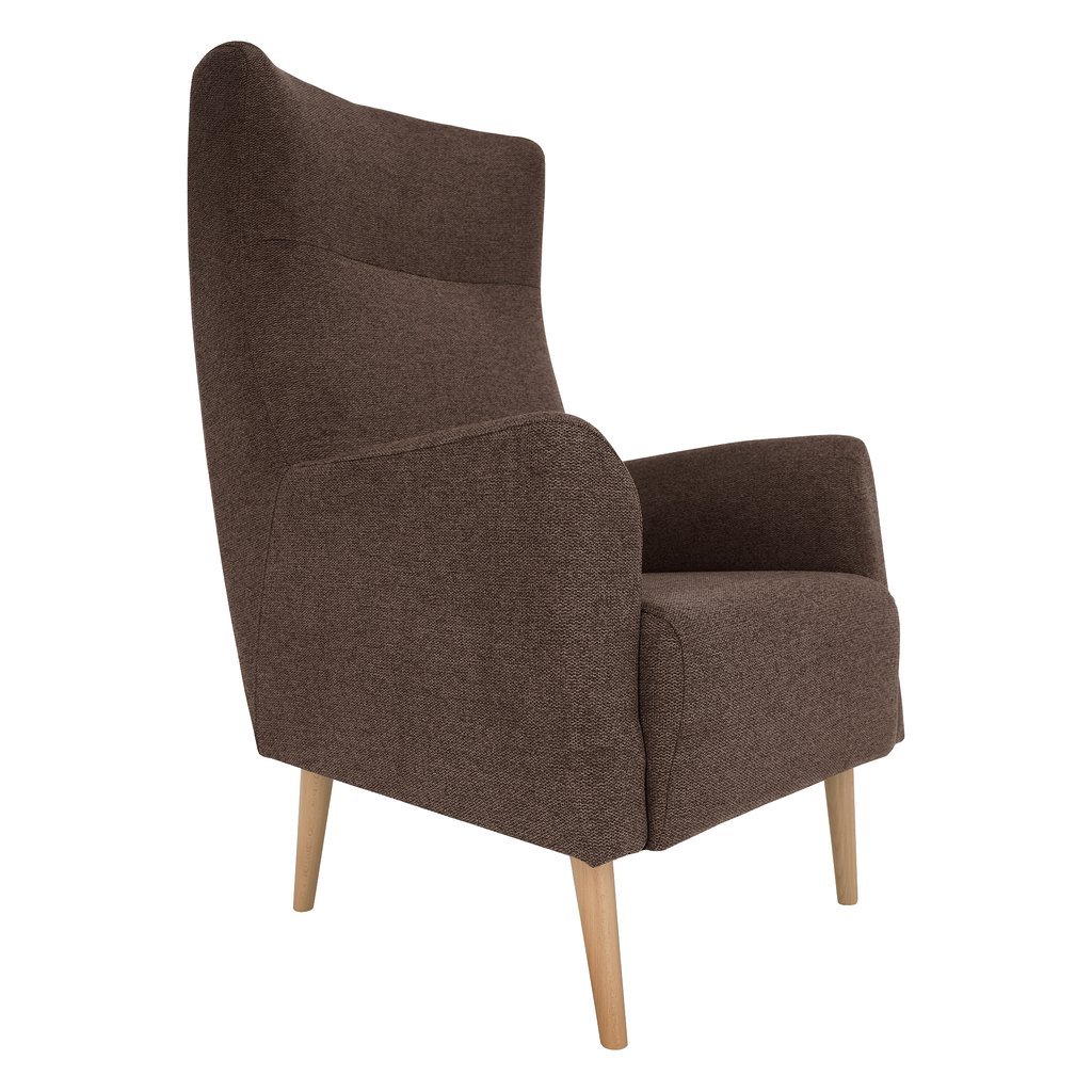 Ušiakové kreslo SAMY v hnedej látke ponúka maximálny komfort s vysokým operadlom a bočnými opierkami. Drevené nohy z buku zaručujú stabilitu. Ideálne na relaxáciu!