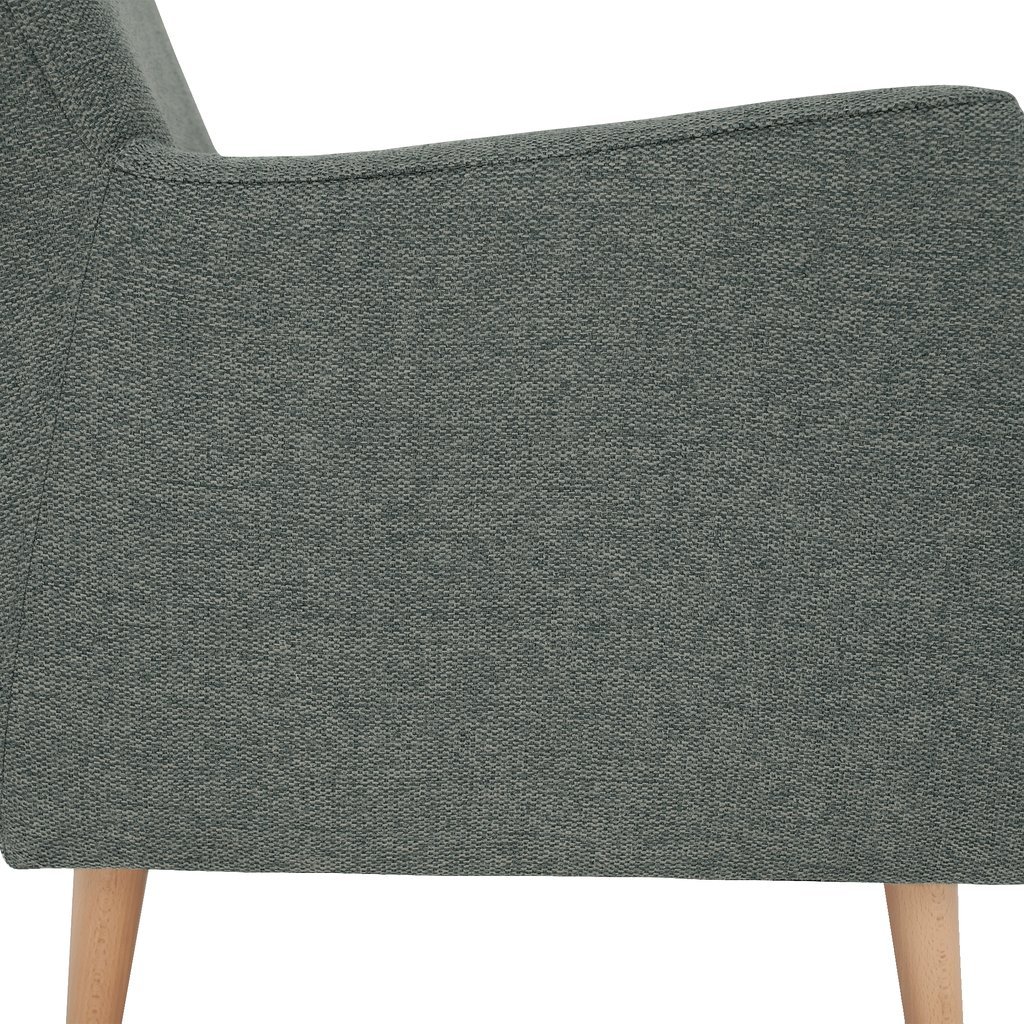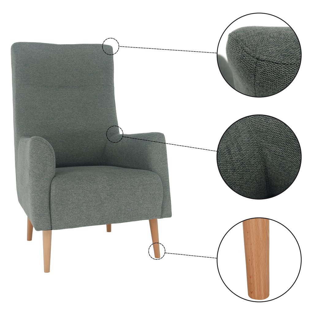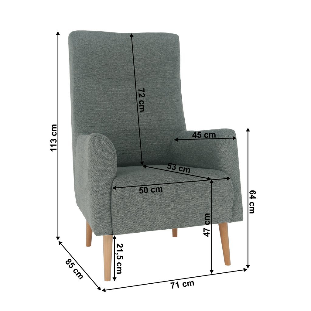 Kreslo je celočalúnené kvalitnou látkou Matana, ktorá zaisťuje nielen estetický vzhľad, ale aj odolnosť. Drevené nohy v prírodnom bukovom prevedení dodávajú kreslu stabilitu a pevnosť, čím sa stáva nielen krásnym, ale aj praktickým doplnkom vášho interiéru.