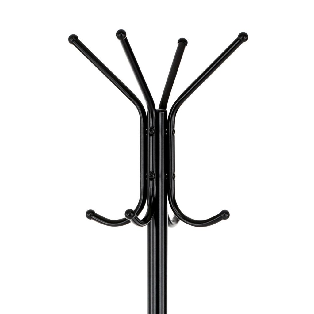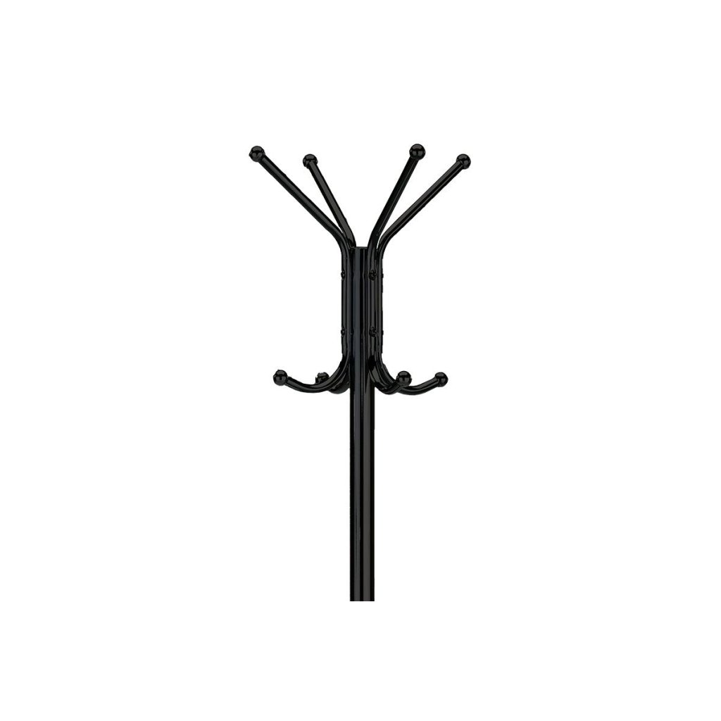 Stojanový vešiak s výškou 182 cm z pevného kovu v matnej čiernej farbe. Ponúka 10 háčikov na efektívne zavesenie oblečenia a stabilnú guľatú základňu pre bezpečné postavenie. Nosnosť 10 kg.