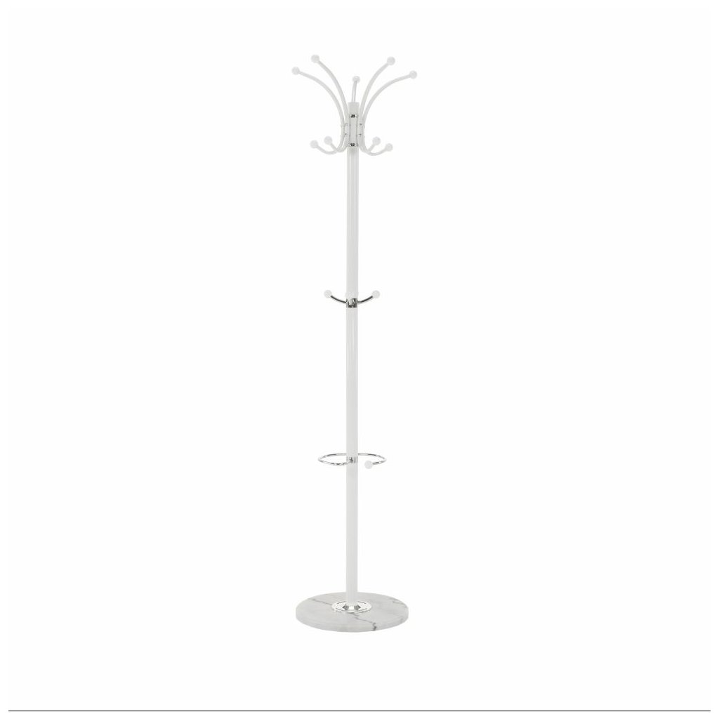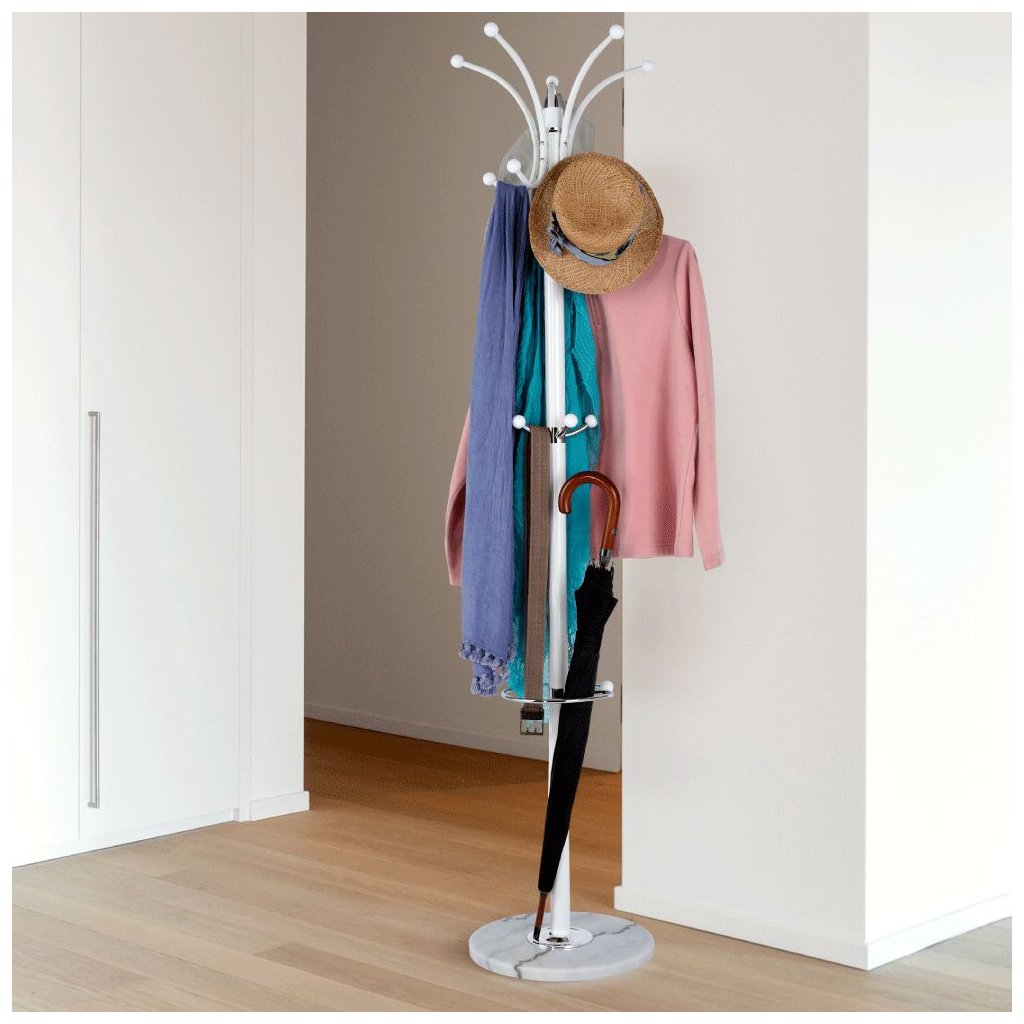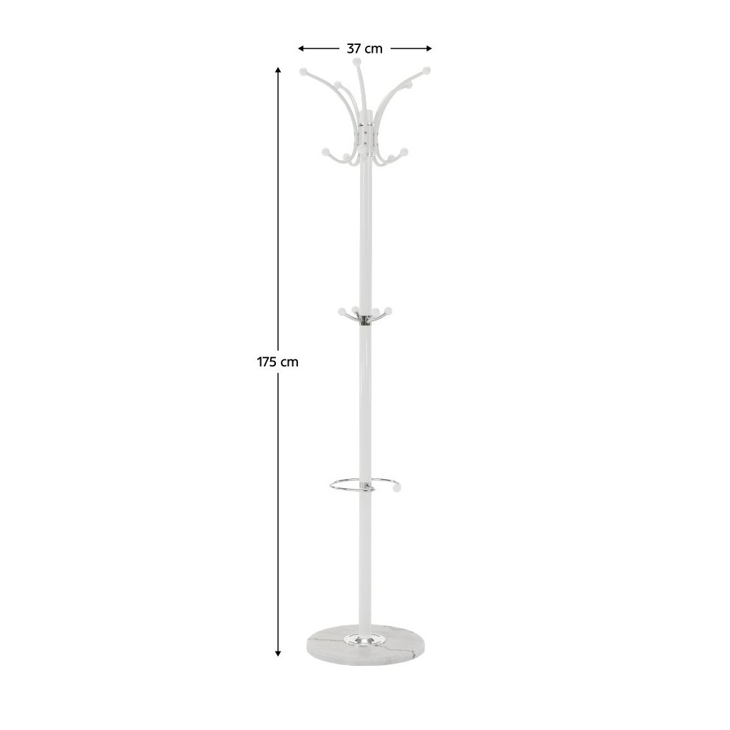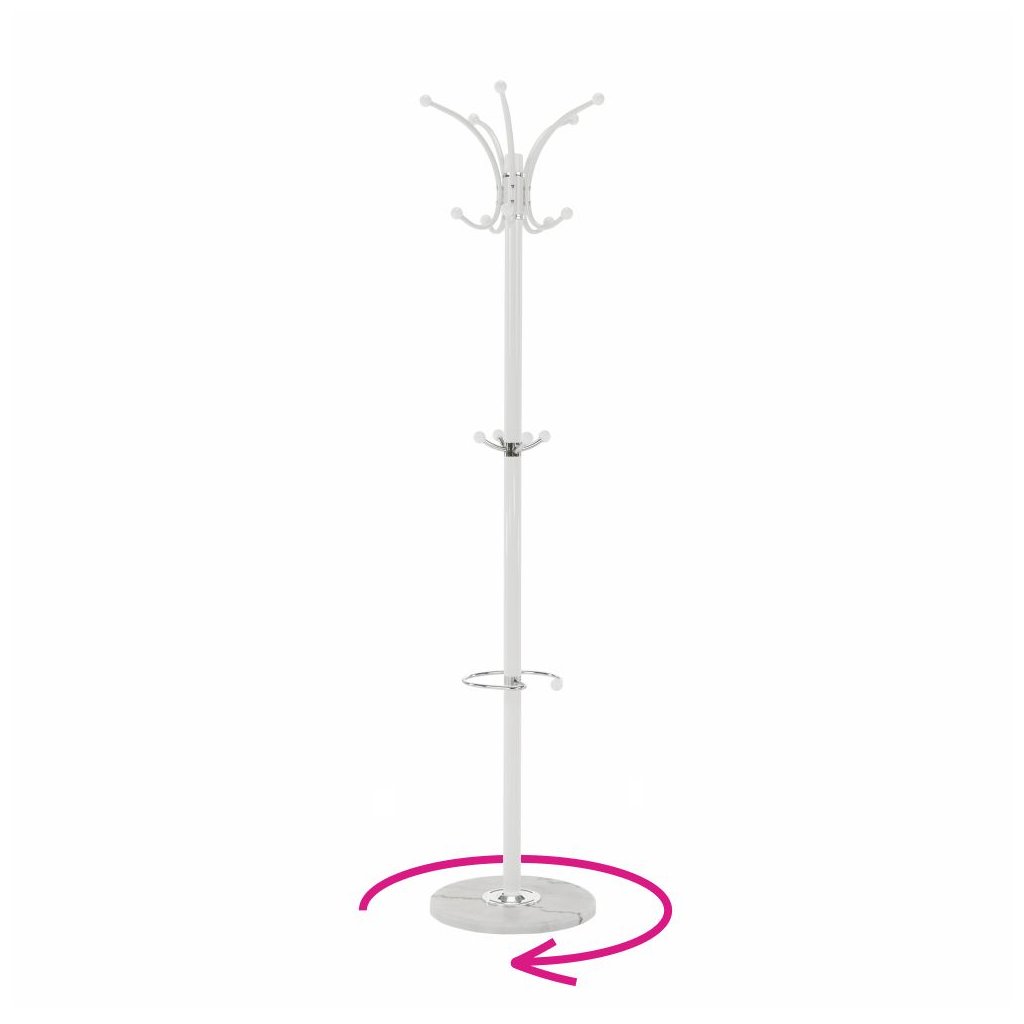 Biely vešiak ALAN s elegantnou mramorovou podstavou a otočným háčikom je praktickým doplnkom do každého interiéru. Rozmery 37x37x175 cm, nosnosť 3 kg. Dodávané v demonte.