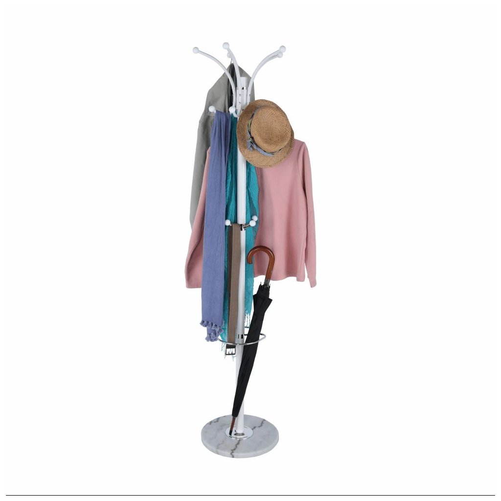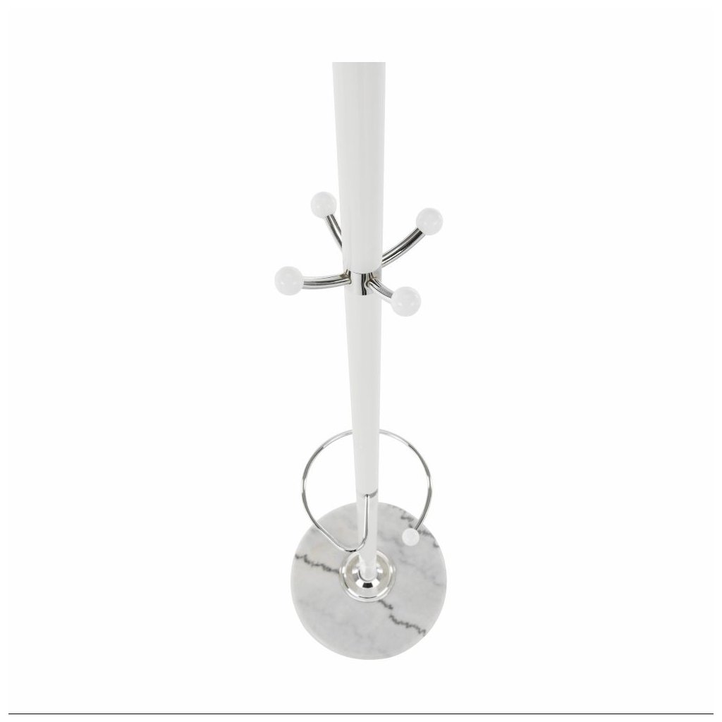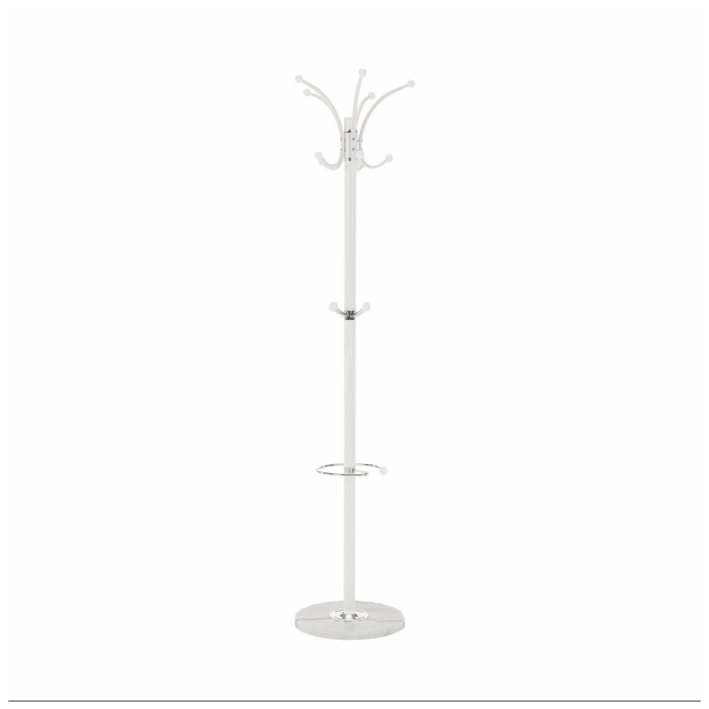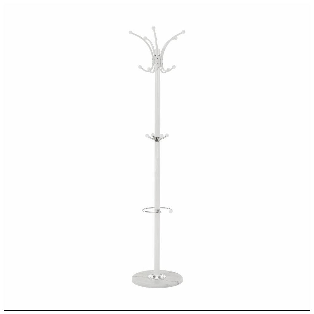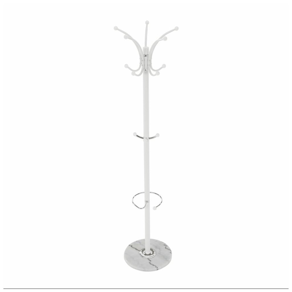 Biely vešiak ALAN s elegantnou mramorovou podstavou a otočným háčikom je praktickým doplnkom do každého interiéru. Rozmery 37x37x175 cm, nosnosť 3 kg. Dodávané v demonte.