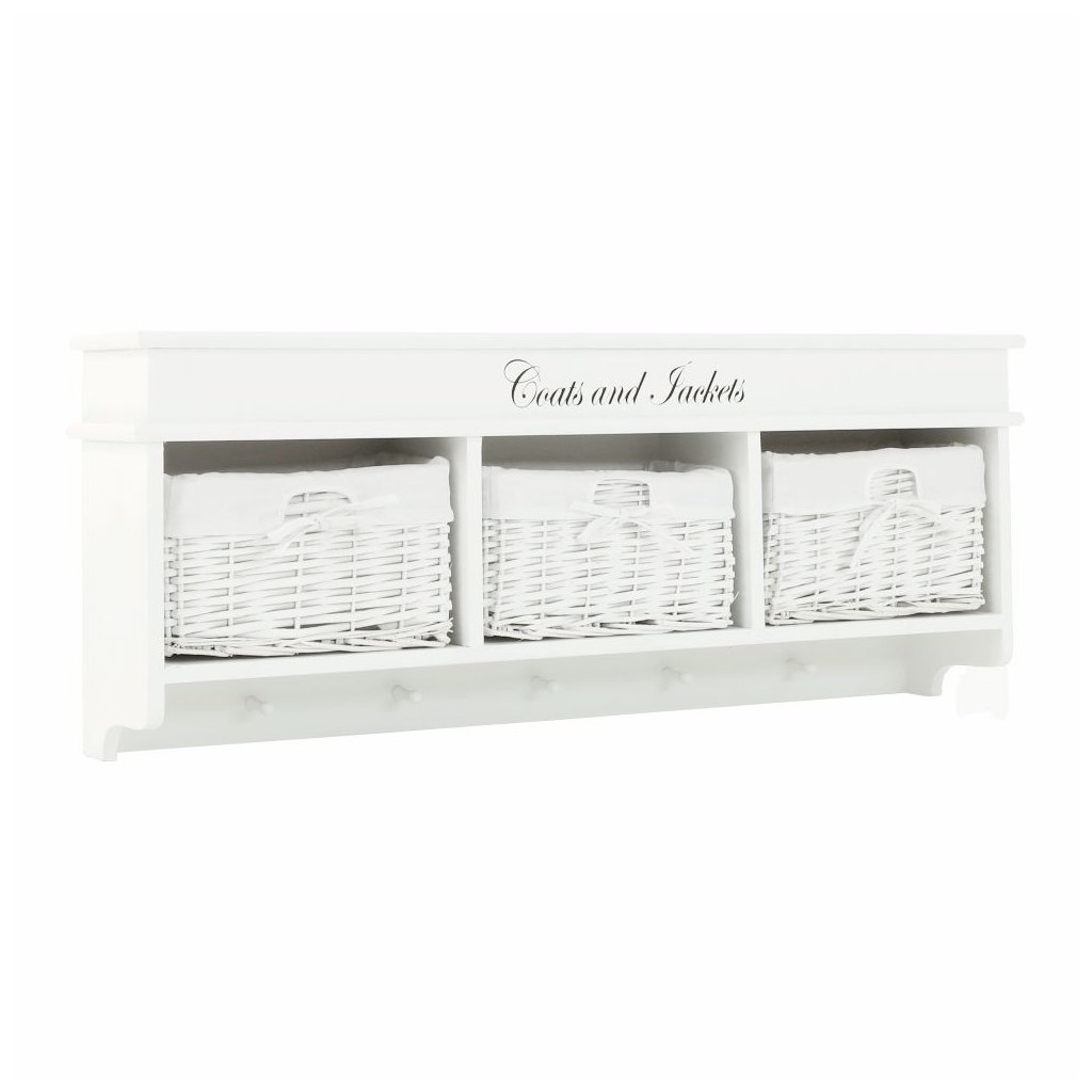 Elegantný biely vešiak s tromi prútenými košíkmi ponúka praktické riešenie na uskladnenie. Rozmery 100x20x40 cm, dodávaný v monte. Ideálny doplnok do predsiene alebo chodby.