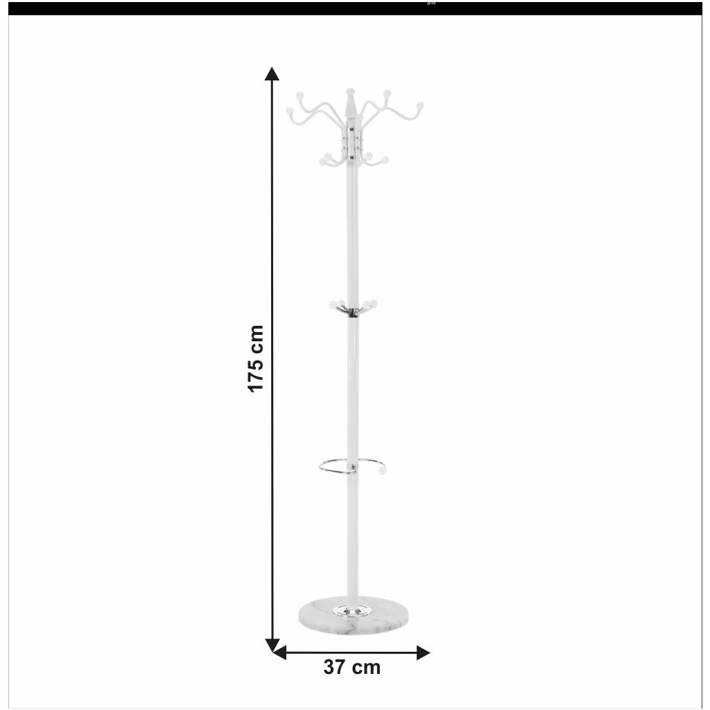 Biely vešiak ELOS z kovu a mramoru dodá vášmu interiéru eleganciu. Rozmery 37x37x175 cm, ideálny na organizáciu kabátov a doplnkov. Dodávaný v demonte.