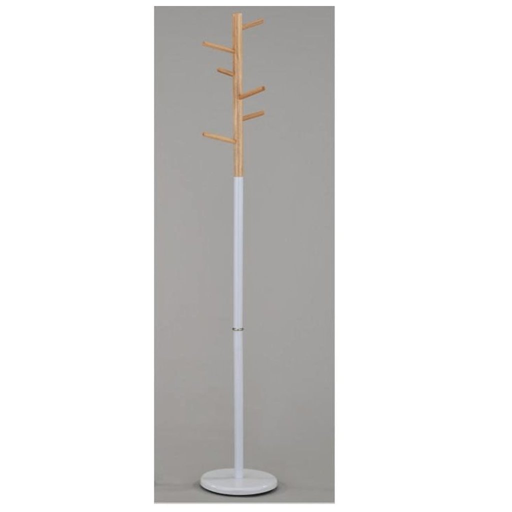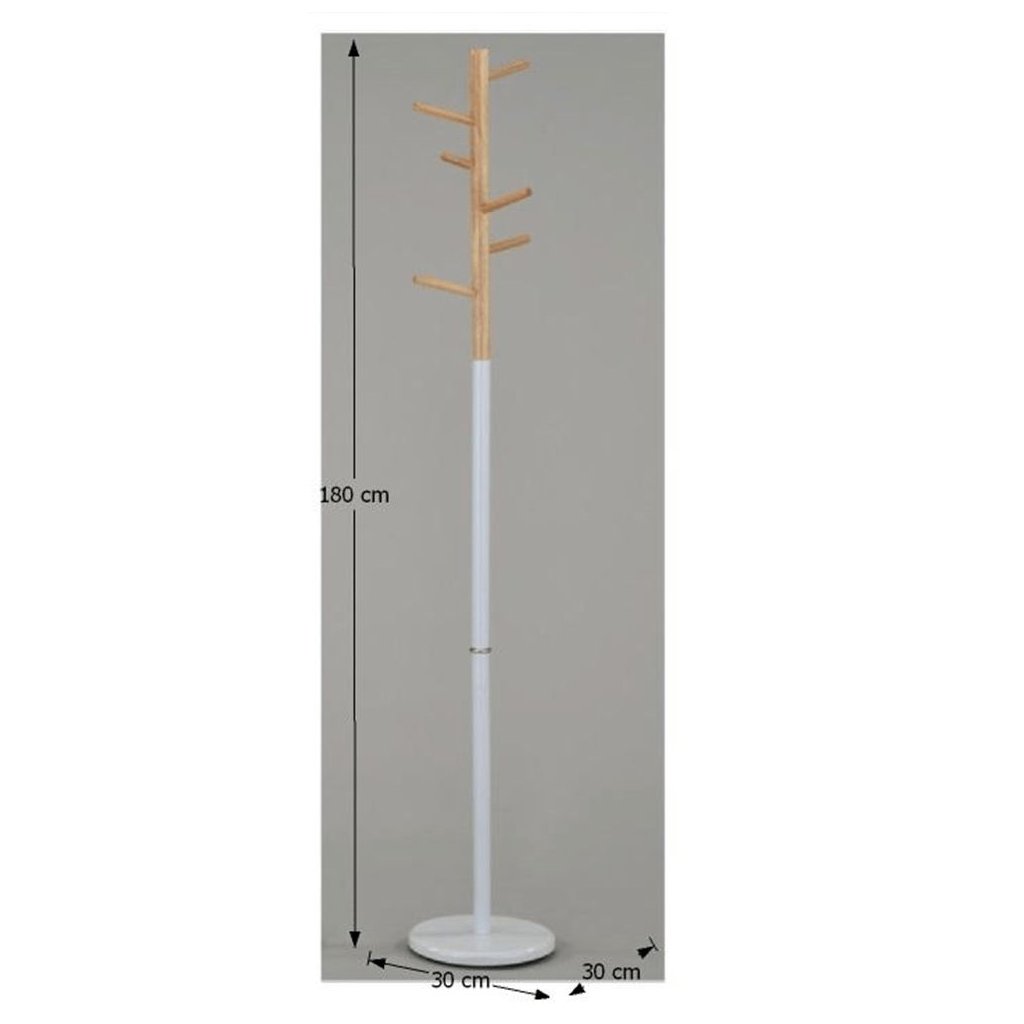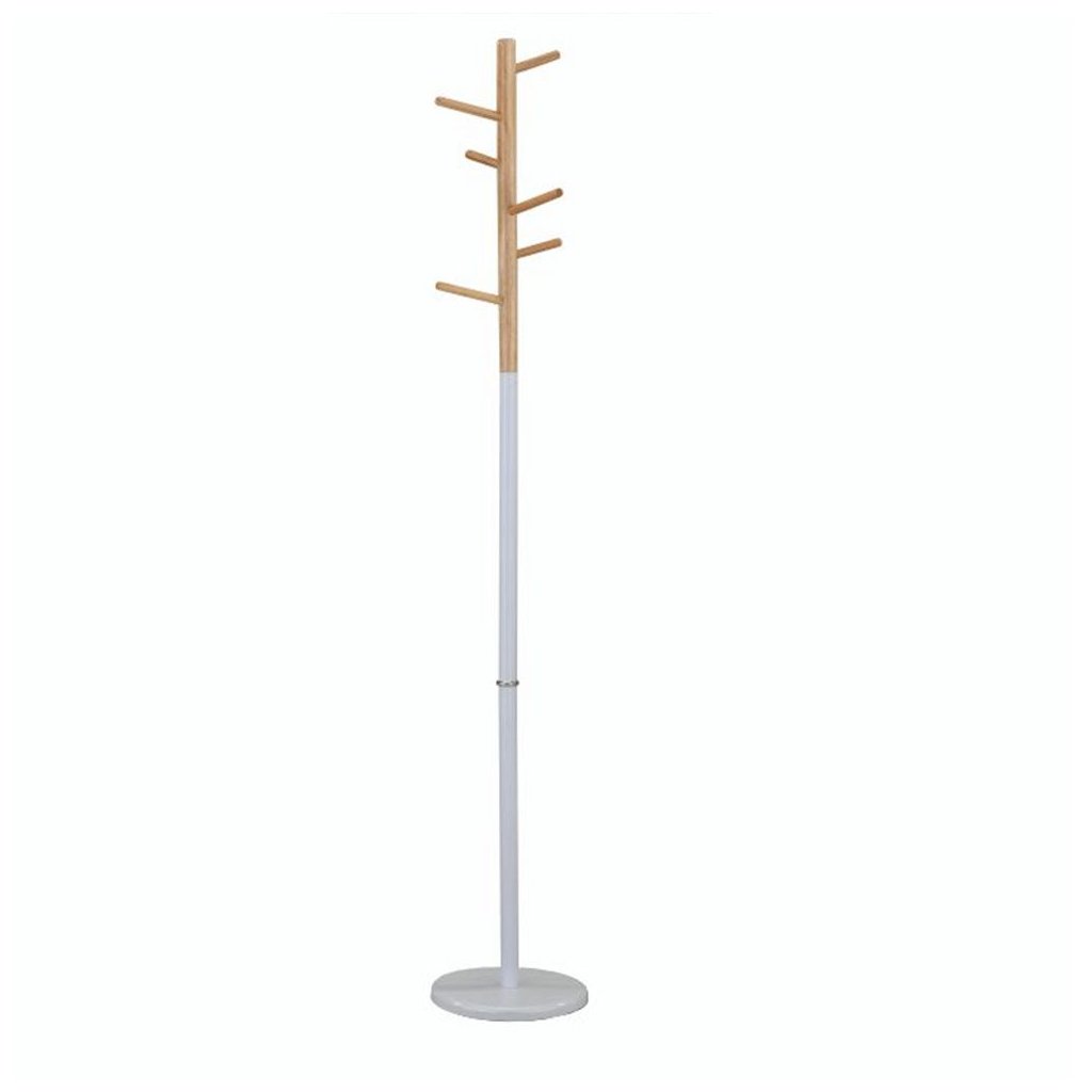 Vešiak HORST kombinuje kov a drevo v elegantnom bielom a prírodnom prevedení. Rozmery 30x30x180 cm. Dodávaný v demonte, ideálny na organizáciu vašich kabátov a doplnkov.
