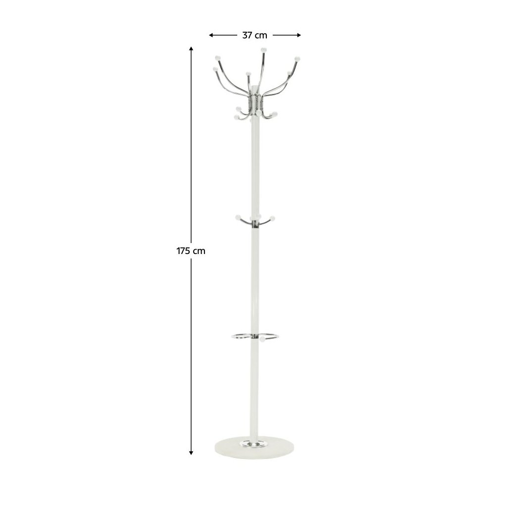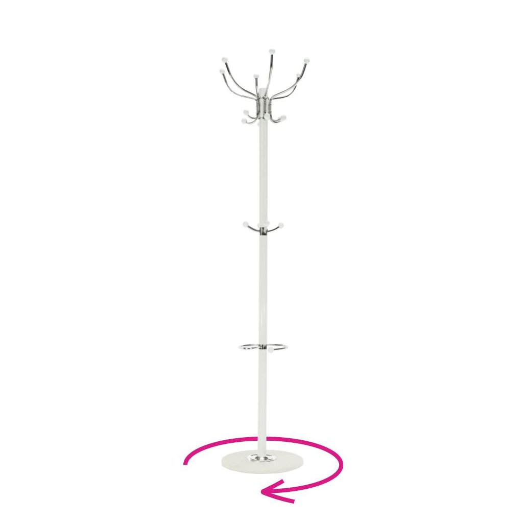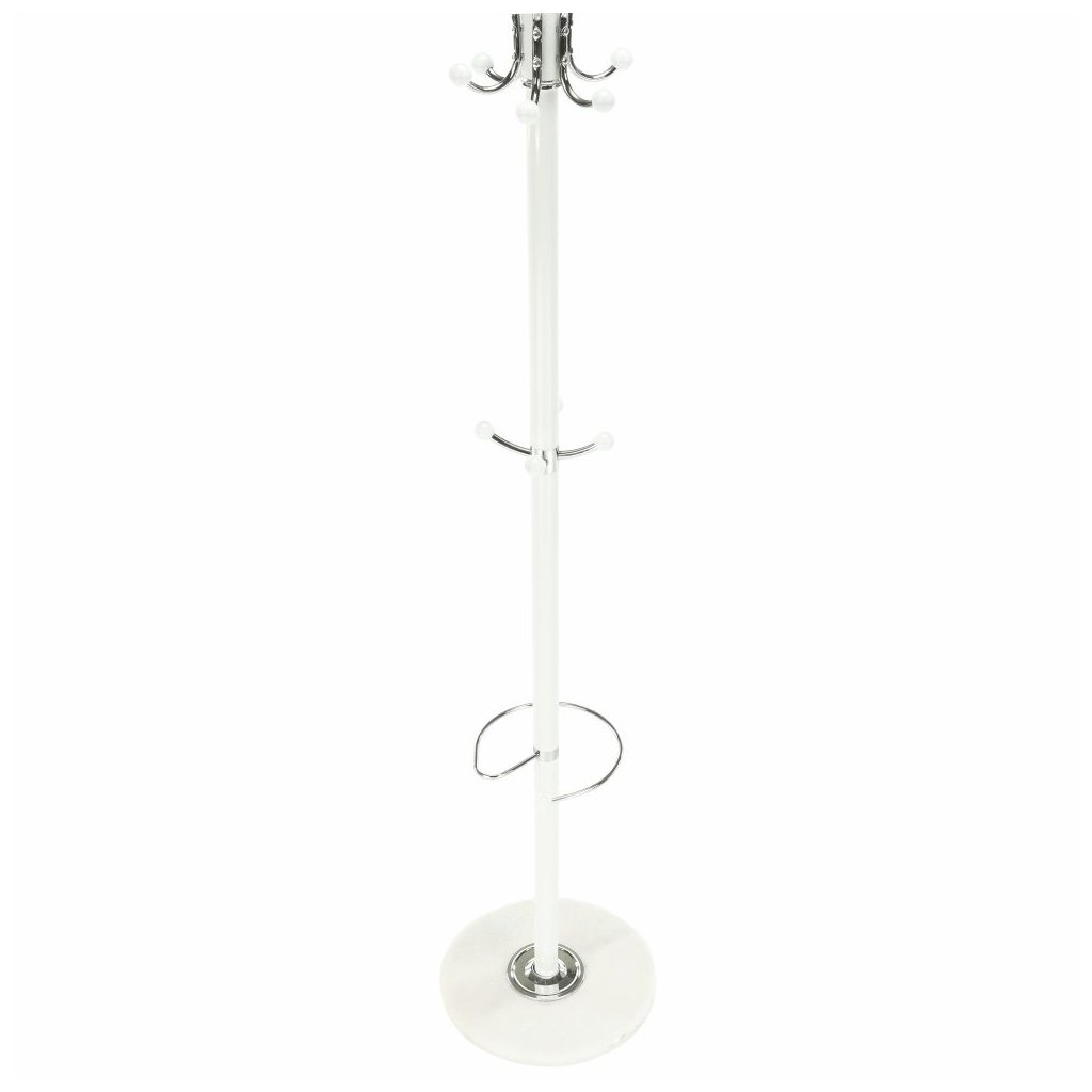 Elegantný biely vešiak s mramorovou podstavou a guľôčkovým ložiskom. Rozmery 37x37x175 cm, nosnosť háčika 2 kg. Dodávaný v demonte, ideálny pre moderné interiéry.
