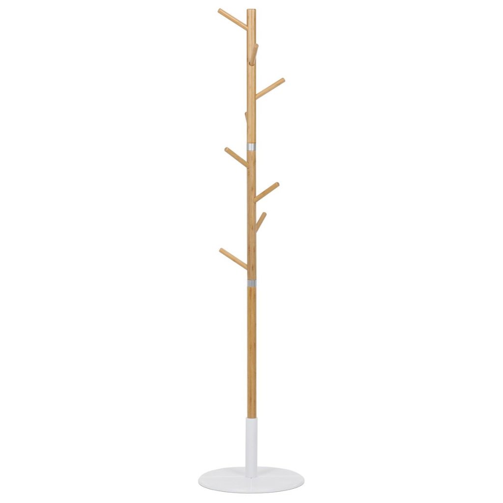 Hnedý vešiak z masívu kombinuje bambus a biele doplnky, čím prináša moderný škandinávsky dizajn. Praktický a elegantný, ideálny na zavesenie oblečenia a doplnkov.