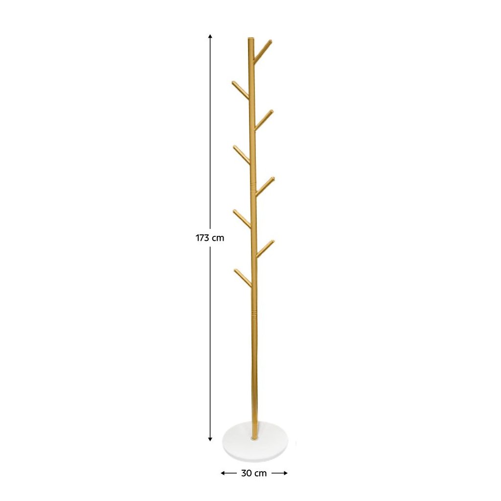 Vešiak TUKAN v zlatej farbe je praktický a jednoduchý doplnok do domácnosti. Vyrobený z kovu a kameňa, má nosnosť 20 kg. Rozmery: 30x30x173 cm, dodávaný v demonte.