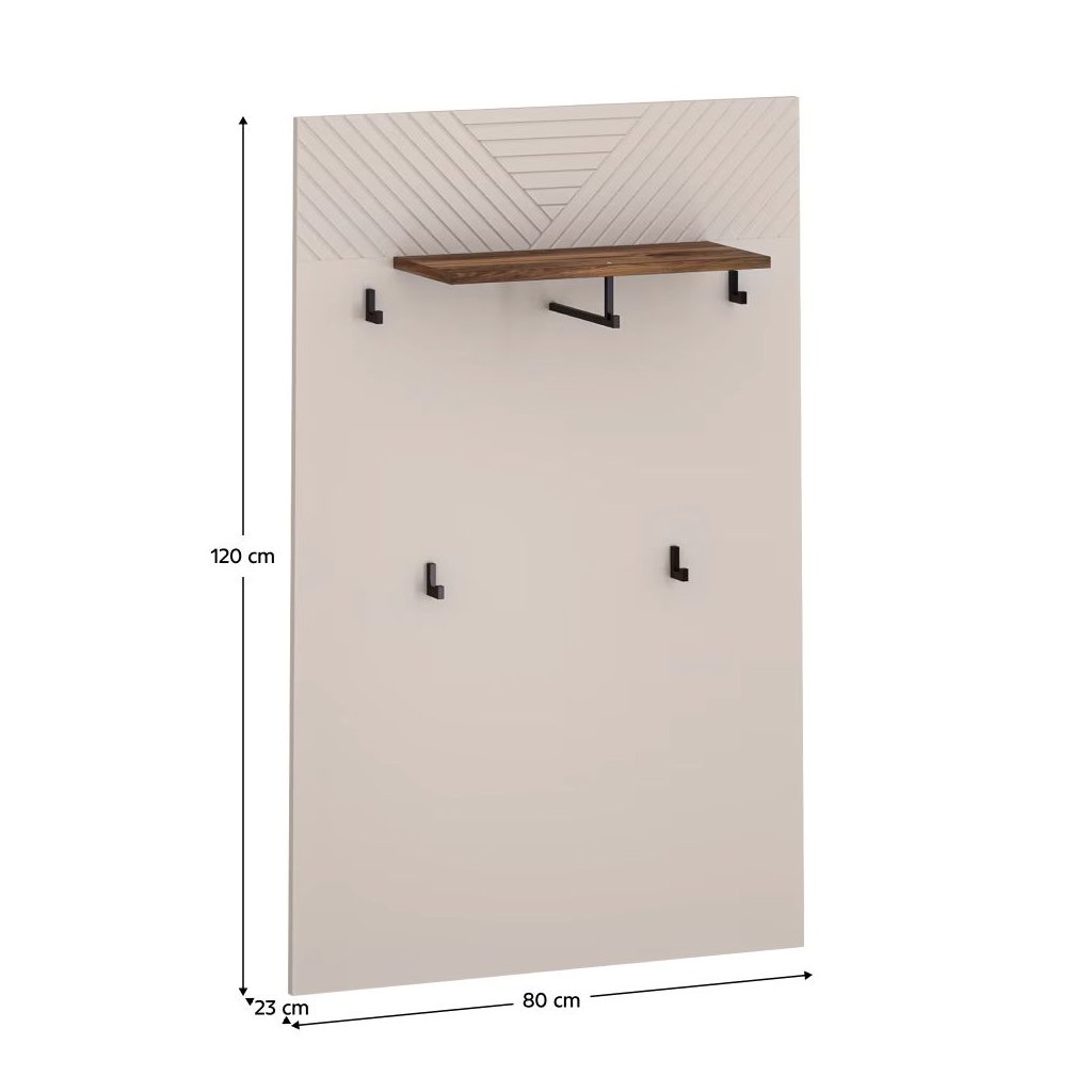 Praktická a elegantná vešiaková stena je ideálnym riešením pre vstupné priestory, chodby alebo aj iné miestnosti vo vašej domácnosti. Jej moderný dizajn v kombinácii farieb kašmír a dub castello zabezpečí, že sa stane štýlovým doplnkom vo vašom interiéri.